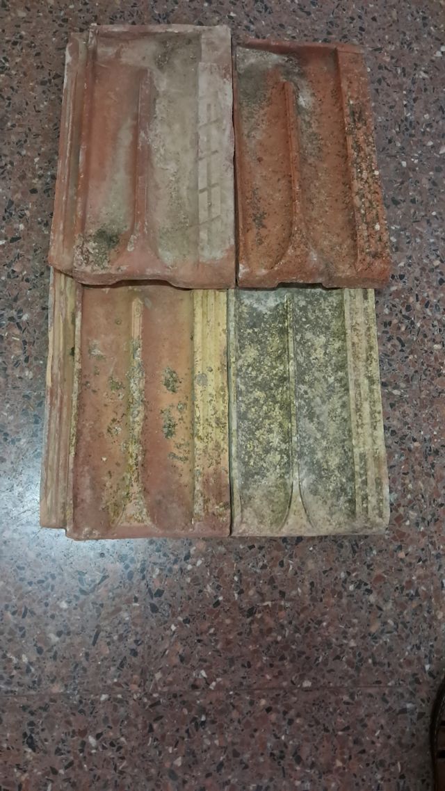 Detalles del productoSe venden cuatro tejas planas de estilo alicantino. Son piezas antiguas con un bonito aspecto desgastado.