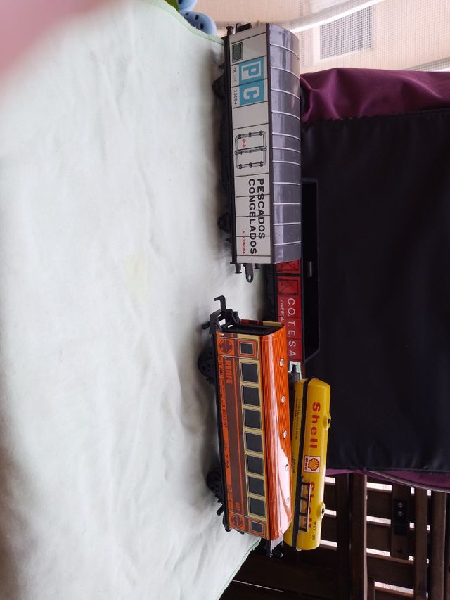 Detalles del productoConjunto de cuatro vagones de tren antiguos, ideales para coleccionistas.
