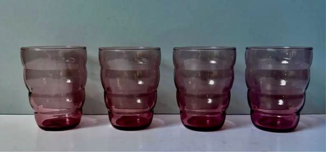 Detalles del productoConjunto de cuatro vasos vintage de Ikea, con un diseño característico de los años 70.
