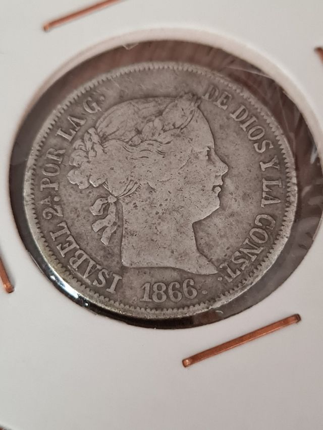 40 céntimos de escudo de plata de Isabel II del año 1866 de Madrid. Entrega en mano en Alcorcón o envío a través de wallapop.