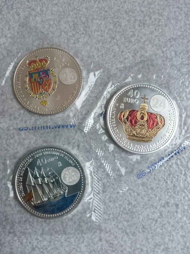 Detalles del productoConjunto de tres monedas conmemorativas de 40 euros de España.