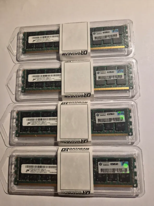 Se venden 4 módulos de memoria RAM DATARAM de 16GB cada uno. - Capacidad total: 64GB (4 x 16GB). - Tipo de memoria: DDR4. - Configuración: 2RX4.