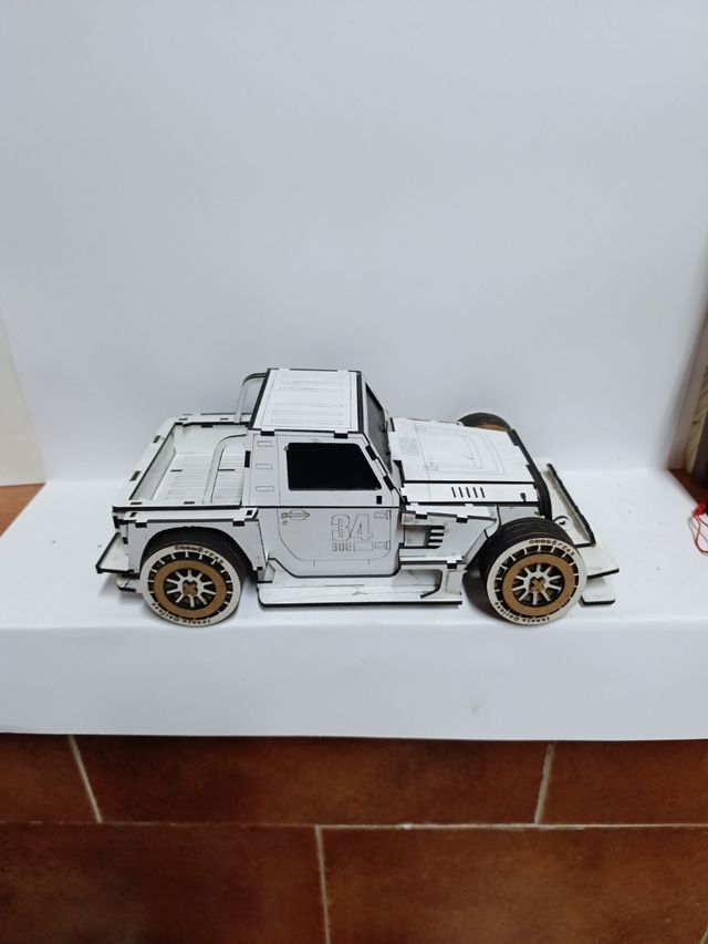 Hecho a escala. Híbrido de 4x4 deportivo. Madera mdf blanca medidas 30ctm largo 18ctm ancho. 12ctm altura