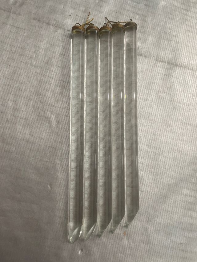 Detalles del productoPreciosa colección de 5 barritas de cristal para lámparas. Ideales para restaurar o crear una lámpara única. -