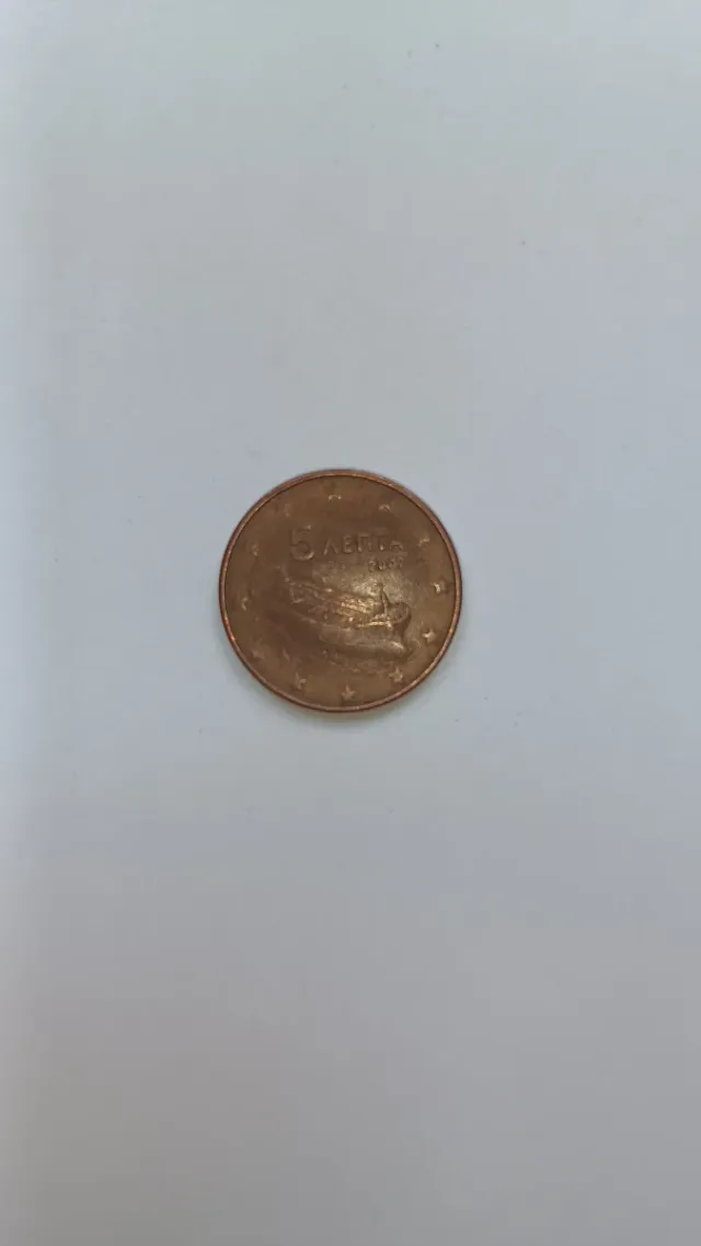 Moneda de 5 céntimos de euro de Grecia, año 2007. - Diseño con un barco. - Borde con estrellas.