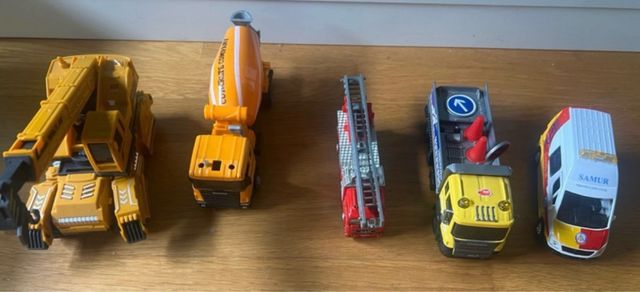 - Incluye una excavadora, una hormigonera, un camión de bomberos, un camión de asistencia en carretera y una ambulancia SAMUR.