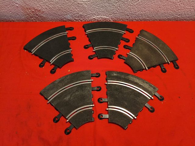 Conjunto de 5 curvas R1 para pistas de slot TecniToys. 2 de ellas con más desgaste. Raíles bien