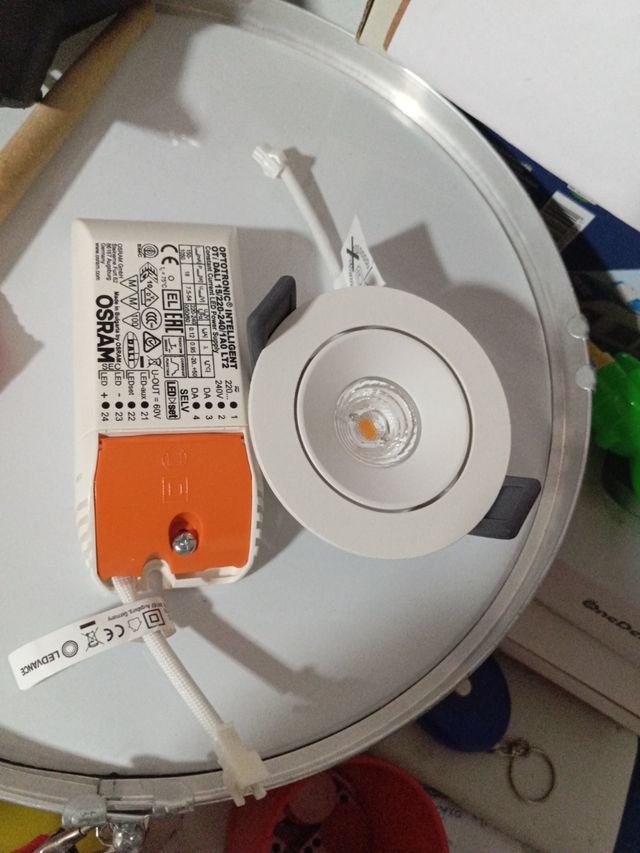 5 Focos led COB empotrables en falso techo, marca osram con sus trafos, consumo 8w, 3000 Kelvin, 660 lm cada uno. Precio por los 5