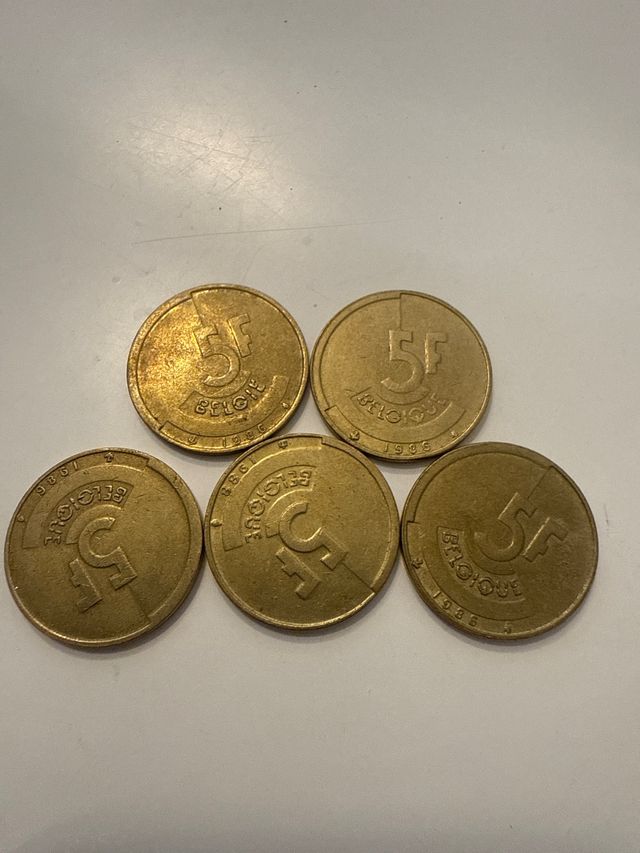 Detalles del productoSe venden cinco monedas de 5 francos belgas. Están en buen estado y son del año 1995.