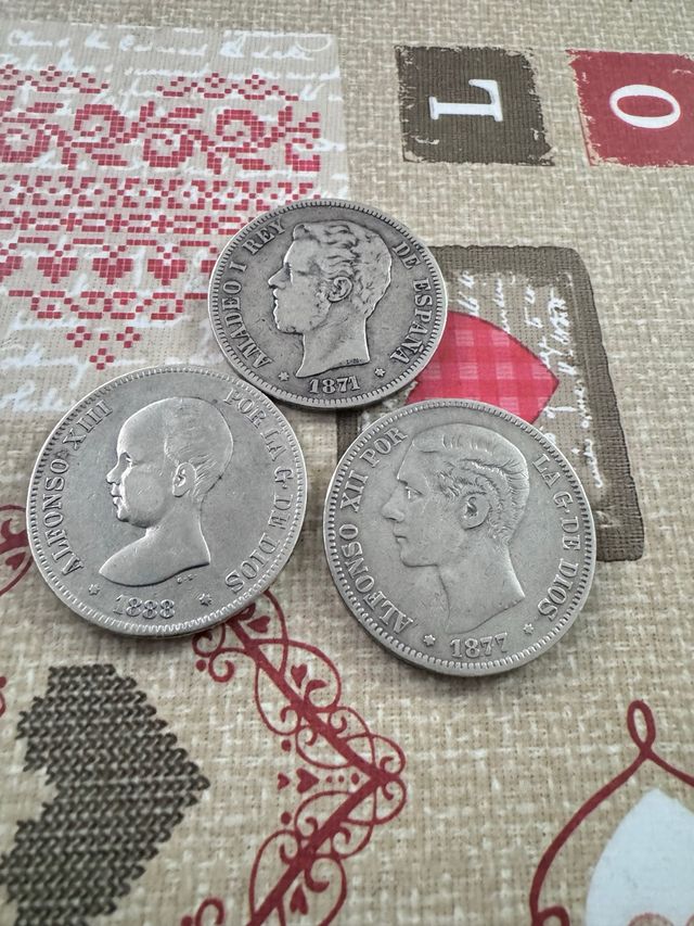 5 pesetas 1871 1877 1888 monedas de plata