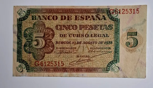 Detalles del productoBonito billete de 5 Pesetas de 1938 Serie G612