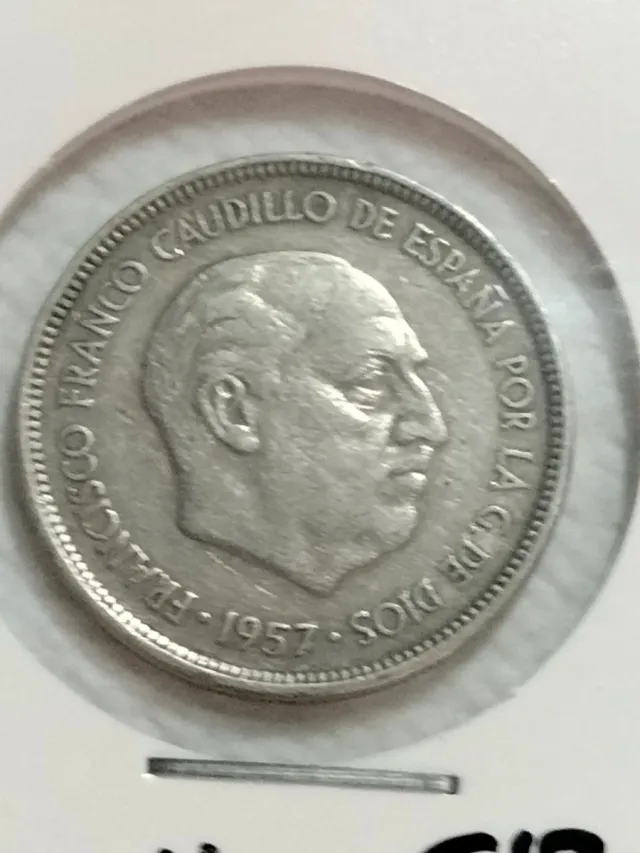 Detalles del productoMoneda de 5 pesetas de España con diseño del año 1957, estrella 68.