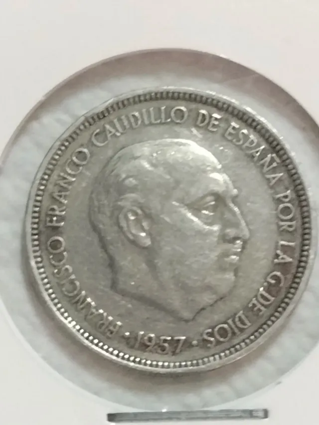 Detalles del productoMoneda de 5 Pesetas con diseño del año 1957.