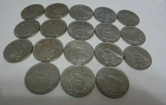 Estrellas 58 a 75. En total 18 monedas que representaron el cambio de la política económica franquista. De la Autarquía al desarrollismo.