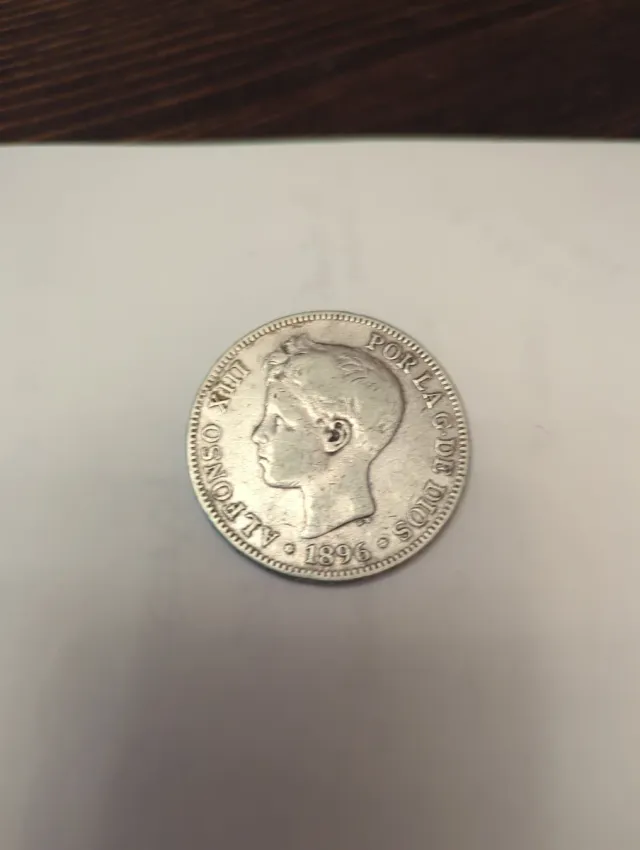 Moneda de 5 pesetas de plata de 1896, con el busto de Alfonso XIII. - Ceca: Madrid - Canto: Estrellas y fecha - Diámetro: 33 mm - Peso: 25 gramos
