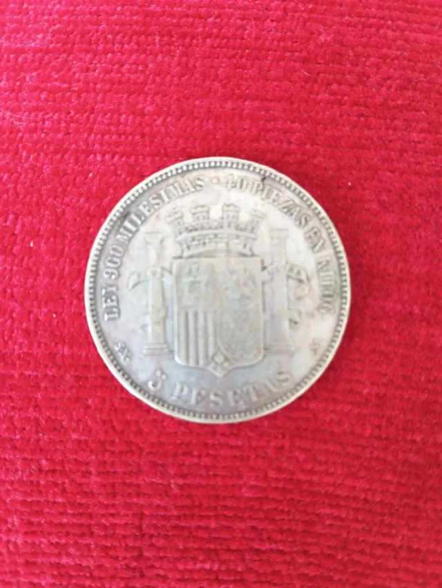 Moneda de 5 pesetas de España, conocida popularmente como duro de plata. - Ley 900 milesimas. - Piezas en numismática.