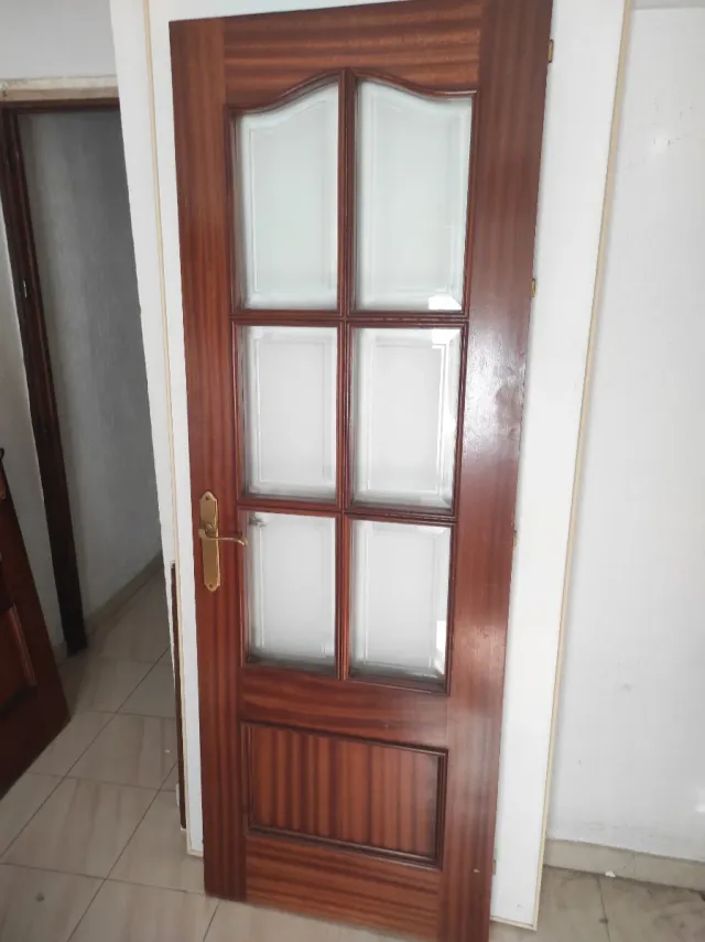 Detalles del productoSe venden cinco puertas de madera maciza con detalles de cristal.