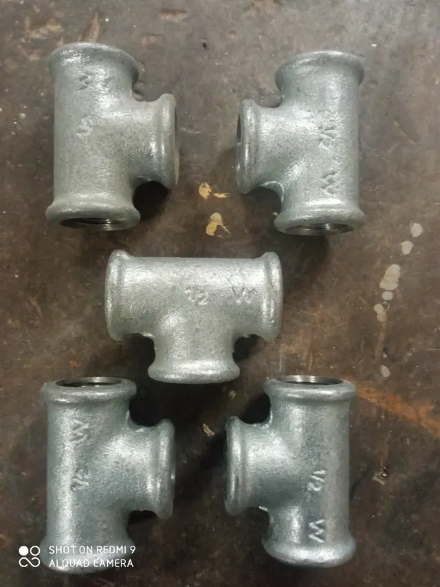 Lote de cinco tes de fontanería galvanizadas. - Tamaño: 1/2 pulgada.