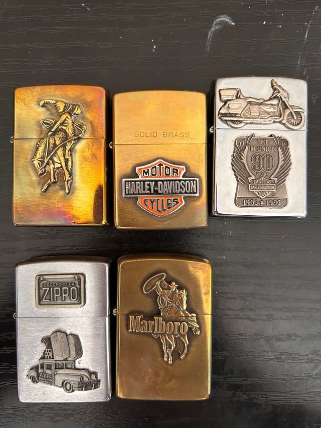 Detalles del productoSe venden cinco encendedores Zippo en estupendo estado. Son piezas únicas para coleccionistas.