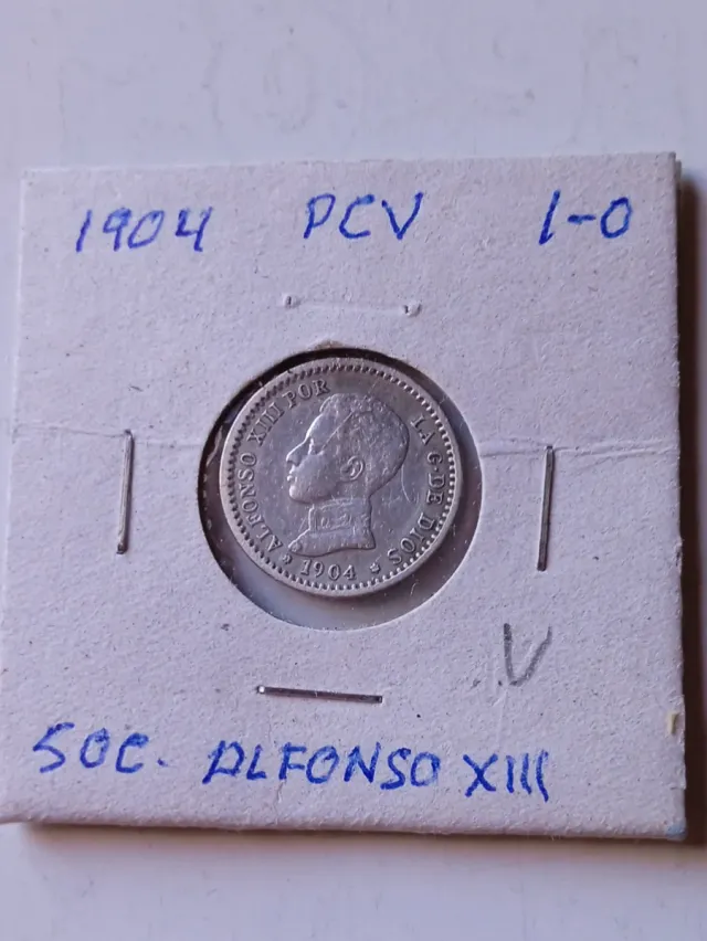 50 centimos del año 1904 estrella 1-0 PCV de Madrid de plata más en mí perfil