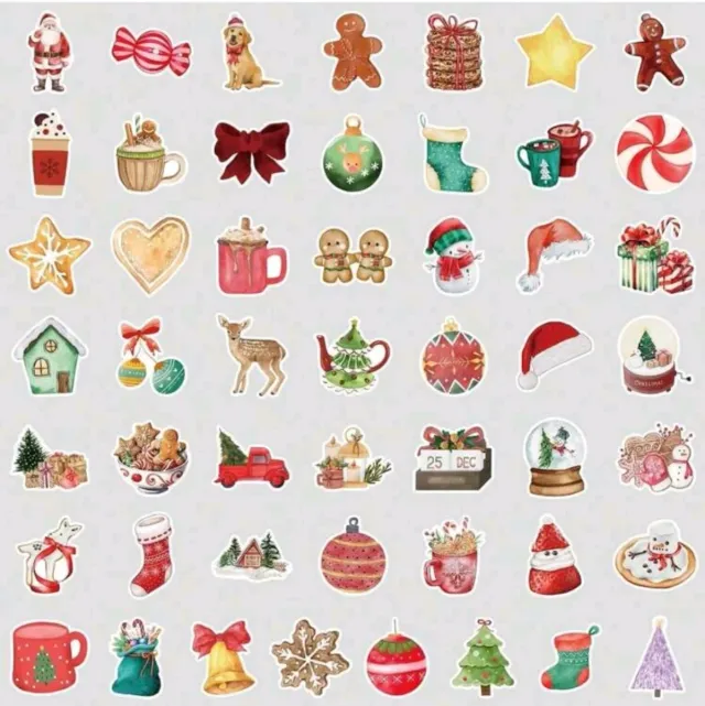 Detalles del productoSet de 50 pegatinas con temática navideña. Perfectas para decorar tus objetos personales o para manualidades.