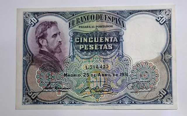 Detalles del productoBonito billete de 50 Pesetas de 1931 Sin serie 1384