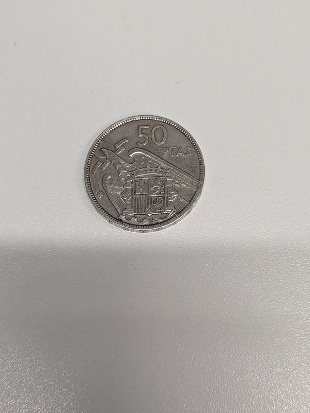 1-moneda de 50 pesetas año 1957 Una Libre Grande Con grabación por los bordes Tiene la grabación estrella-59 Desconozco su valor