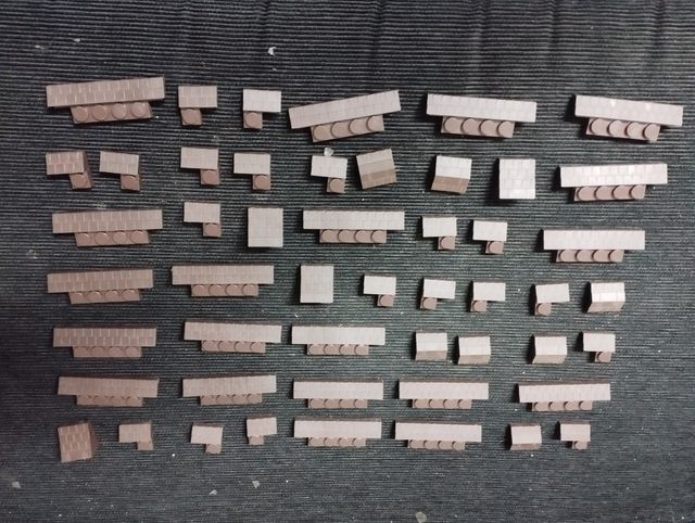 Detalles del productoConjunto de piezas de tejados Exin West, ideales para construir. Son piezas de plástico de color marrón.