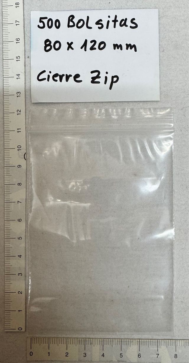Lote de 500 bolsitas de plástico transparente con cierre tipo Zip. - Medidas: 80 x 120 mm. - Cierre hermético Zip.