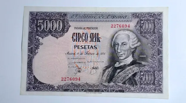Detalles del productoBonito billete de 5000 Pesetas de 1976 Sin serie 2276