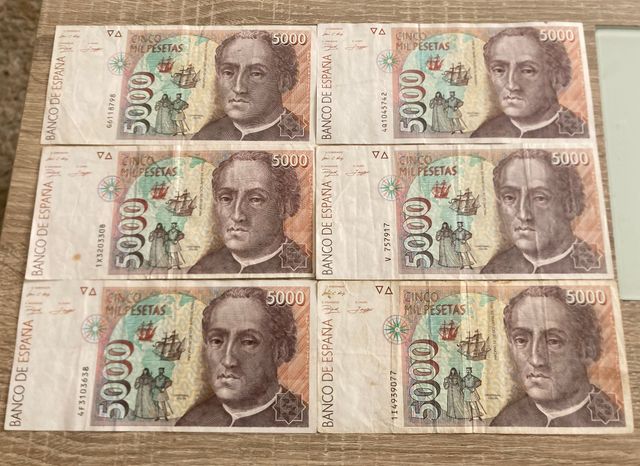 Detalles del producto6 billetes de 5000 pesetas del año 1992.