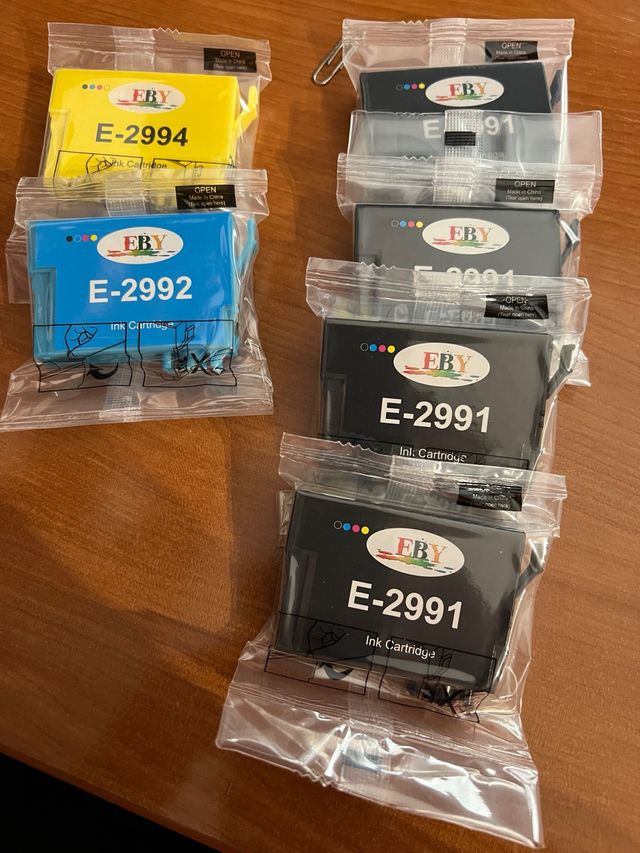 Detalles del productoSe venden 6 cartuchos de tinta para impresora EBY. Están nuevos, sin abrir y en sus respectivos paquetes.