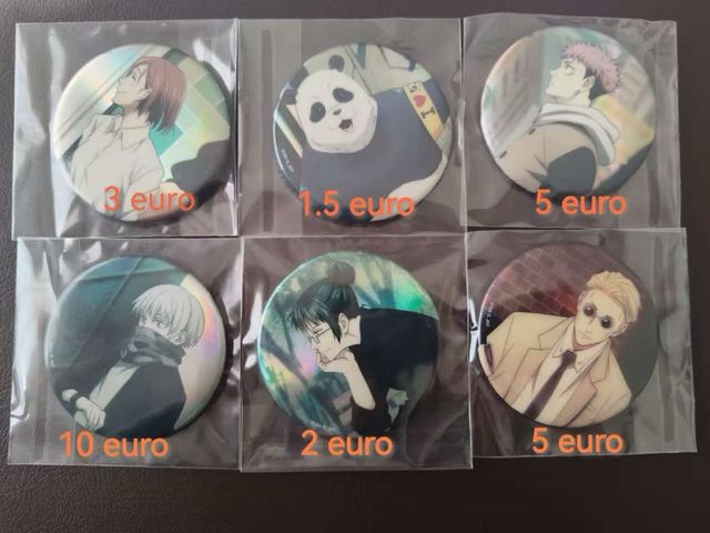 Detalles del productoChapas de Jujutsu Kaisen, ¡ideales para coleccionistas! Se venden seis chapas, algunas con efecto holográfico. Precios varían según la chapa (ver fotos). Están en perfecto estado.