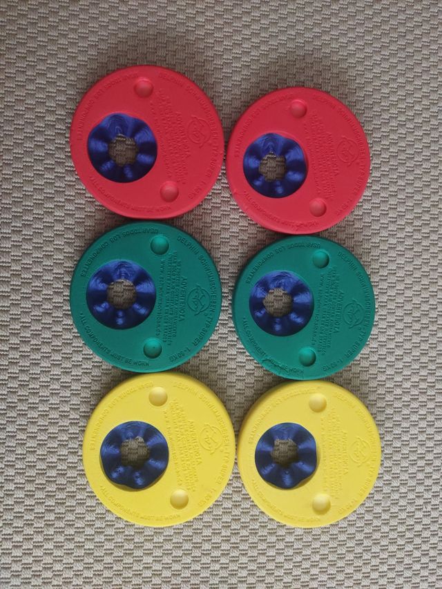 Detalles del productoSe venden seis discos de flotación Delphin, modelo Super 1-50kg. Son de colores rojo, verde y amrillo