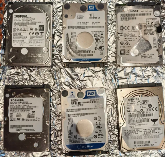 Detalles del productoLote de seis discos duros de diferentes marcas. Incluye modelos de Toshiba, WD y HGST.