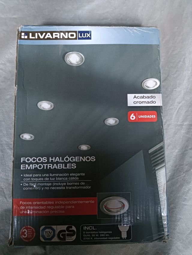 Detalles del productoFocos halógenos empotrables, cromados y de fácil montaje. Incluyen bornes de conexión y no necesitan transformador. Son orientables independientemente, con intensidad regulable para una iluminación precisa. Se incluyen 6 bombillas halógenas GU10, 50 W, 280 lm, 2700 K, de intensidad regulable.