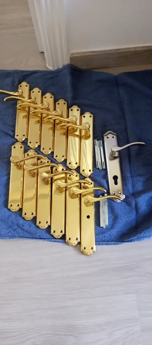 Se venden 6 juegos de manillas doradas, ideales para puertas.las manillas que se ven en las fotos - Acabado brillante. - Diseño elegante.