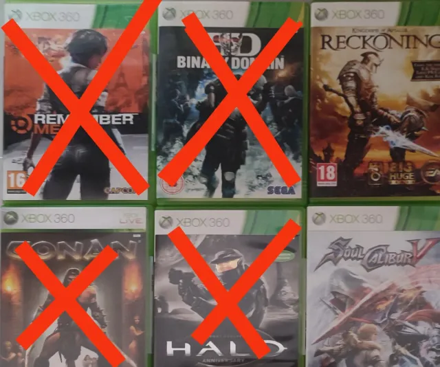 Como nuevo · Xbox 360 · Binary Domain y Conan y Halo Anniversary y Reckoning y Remember Me y Soul Calibur V · Acción