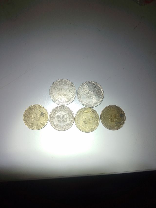 2 monedas de 200 pesos y 4 monedas de 100 pesos las 6 por 5€