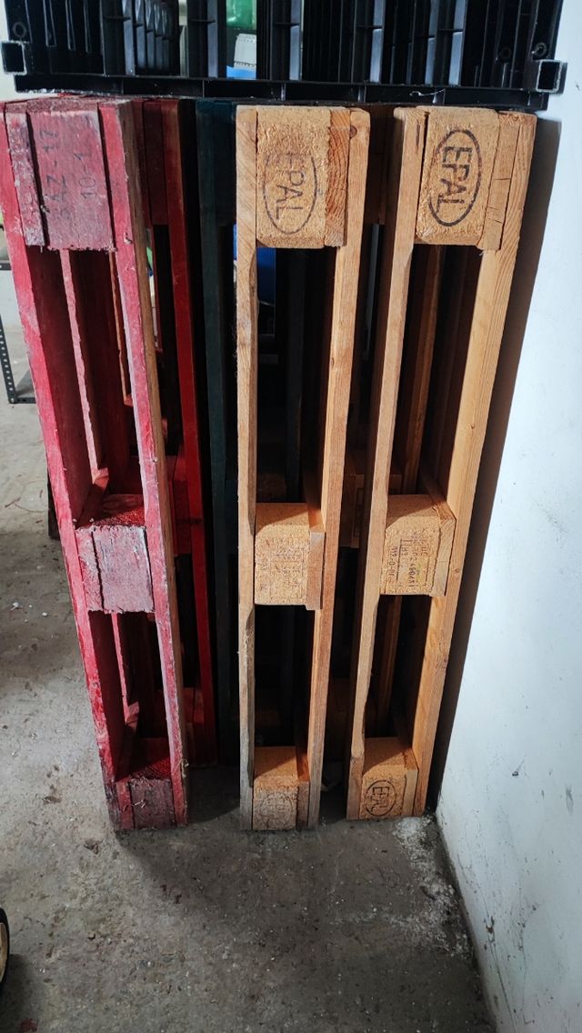 3 palets europeos de 120 x 80cm 2 color rojo 10€ 1 color azul 10€ Todos por 26€
