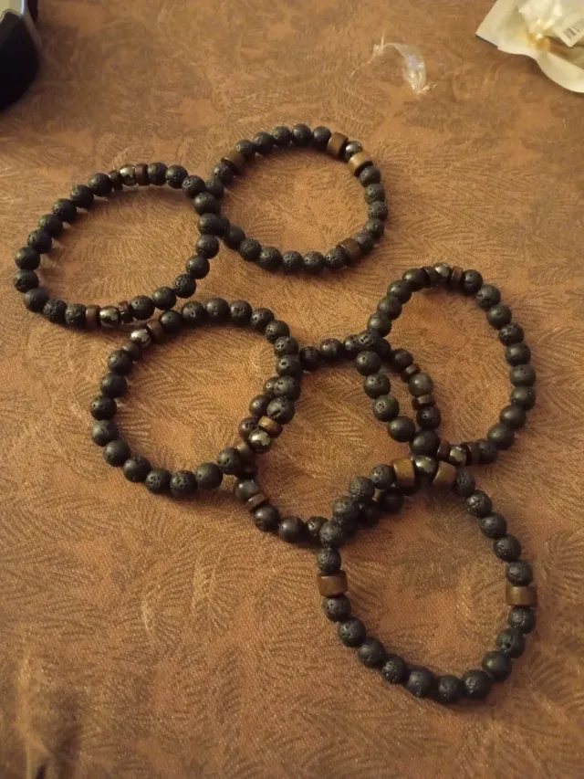 6 Pulseras Piedra Lava Tibetana