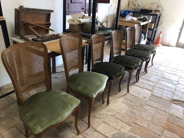 6 Sillas Antiguas Madera Rattan Terciopelo