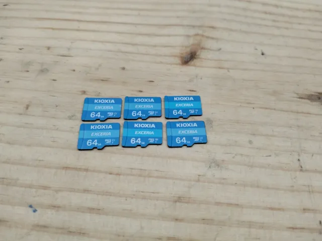 Se venden 6 tarjetas de memoria Micro SD de 64GB. - Capacidad de 64GB por tarjeta. - Marca Kioxia. - Modelo EXCERIA.