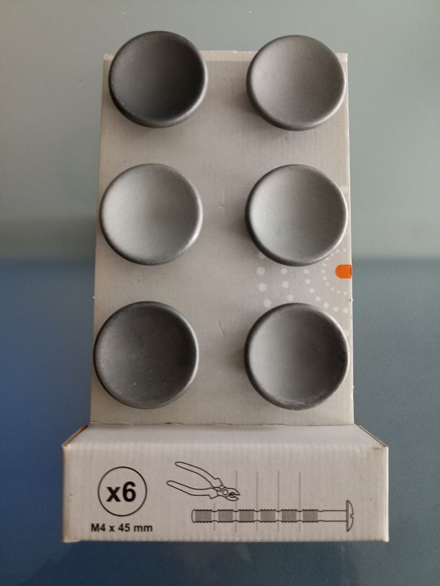 6 tiradores de metal de color acero envejecido con 6 tornillos recortables, nuevos.