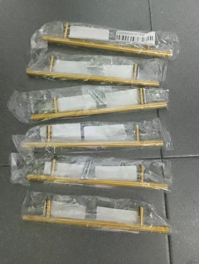 Detalles del productoConjunto de seis tiradores de color dorado, perfectos para dar un toque elegante a tus muebles.