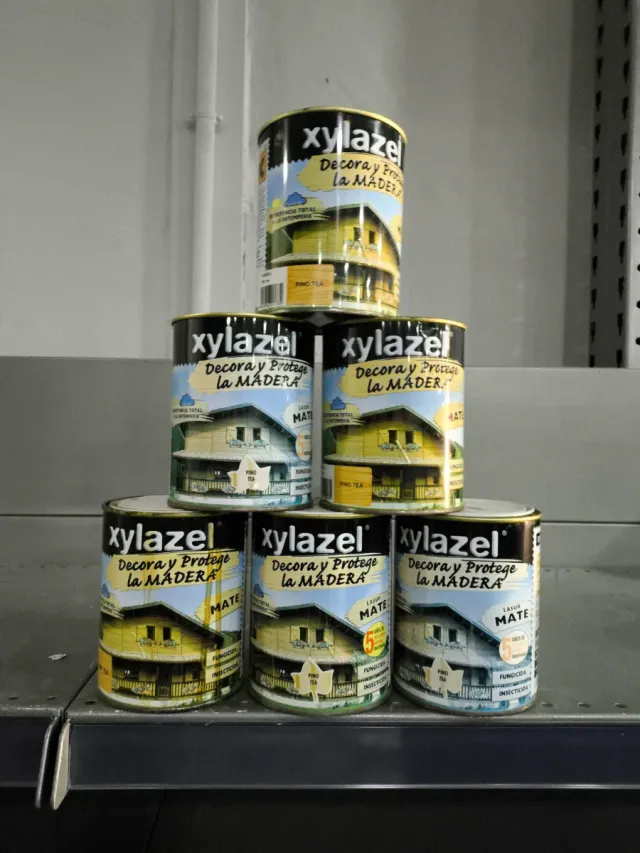 Lote de 6 botes de lasur Xylazel en acabado mate y tono pino tea. - Capacidad: 750 ml por bote. - Acabado: Mate. - Tono: Pino Tea. - Marca: Xylazel.