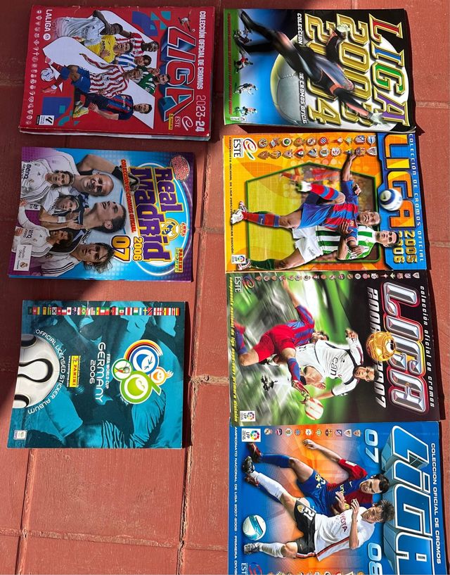 Detalles del productoLote de álbumes de cromos de fútbol de La Liga y Mundiales.