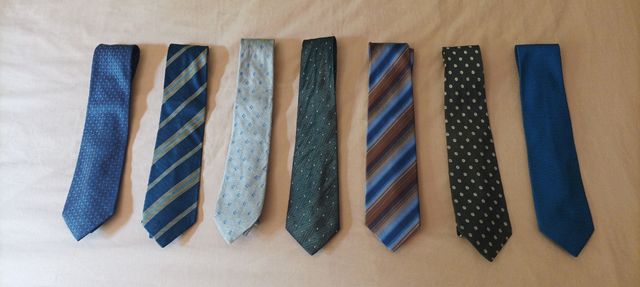 7 Corbatas seda - Azul, Verde y Beige. Hechas mano