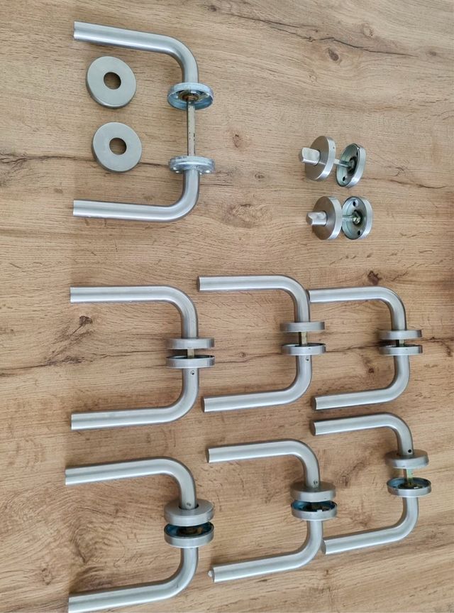 Set de 7 juegos de manillas para puerta y 2 cancelas. - Material: Acero inoxidable. - Diseño moderno y elegante.