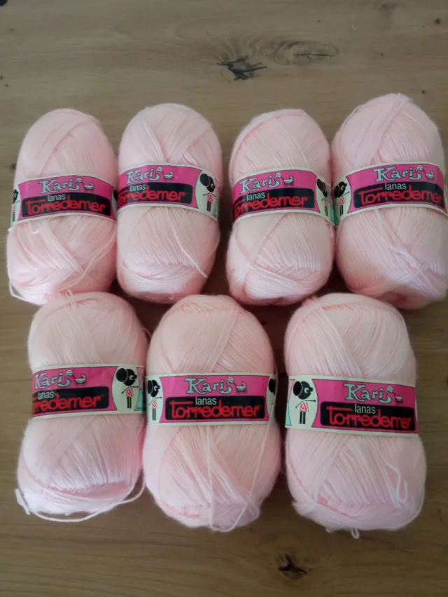 Detalles del productoLote de 7 ovillos de lana de la marca Karis Lanas Torredemer en un bonito color rosa claro.